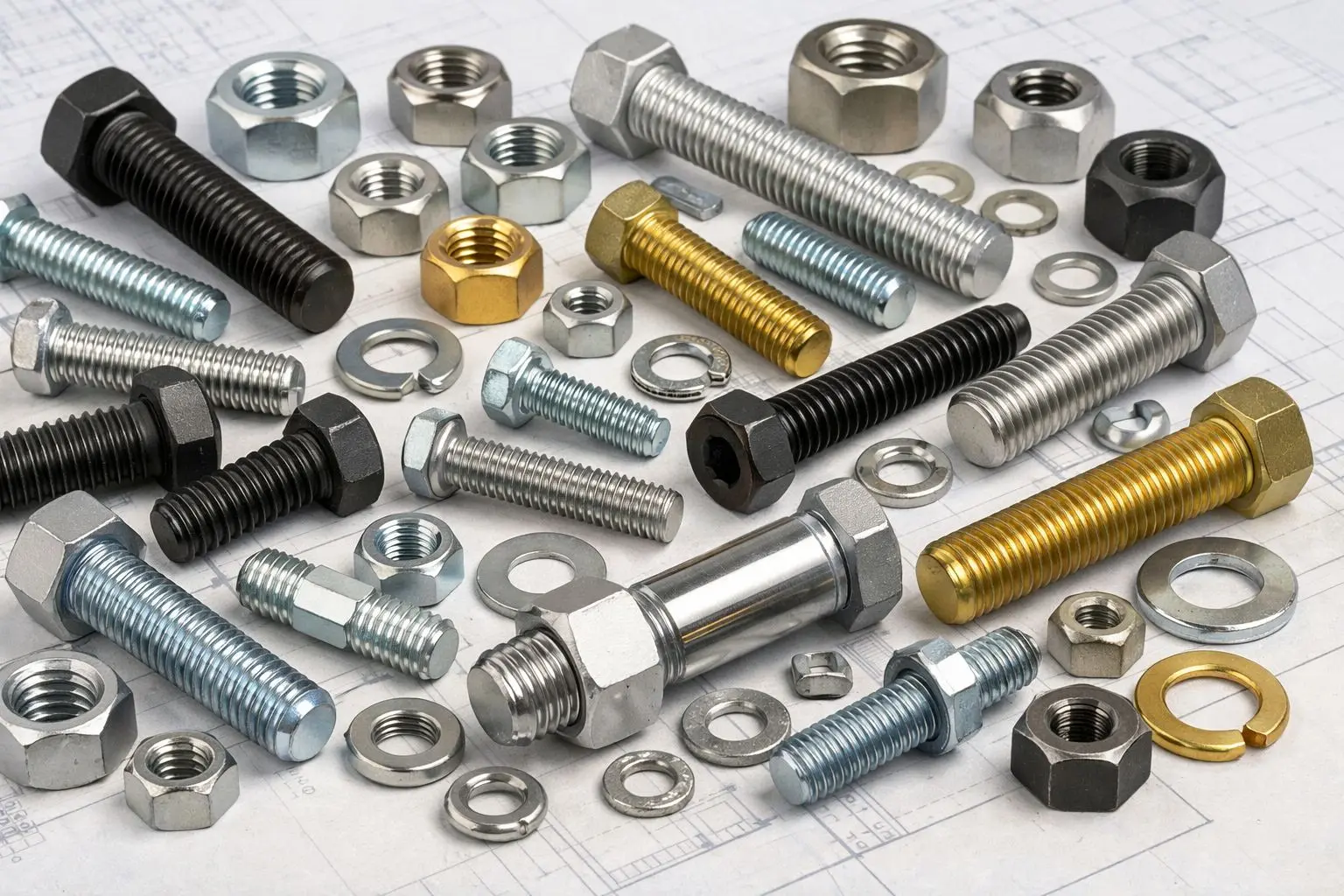 Крепеж различают по нормативной базе, технологии изготовления и материалу.