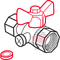 - Угловой кран. Используется при ограниченном пространстве или необходимости поворота направления потока.