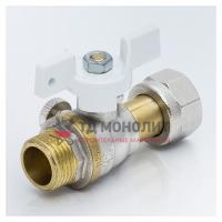Кран изготовлен из высококачественной латуни с никелированным покрытием, что обеспечивает защиту от коррозии и продлевает срок службы изделия. Номинальный диаметр составляет 15 мм (Ду 15), расчетное рабочее давление — 40 бар (Ру 40). Конструкция включает наружную резьбу (НР) и накидную гайку стандарта G1/2", что облегчает монтаж и демонтаж устройства.
