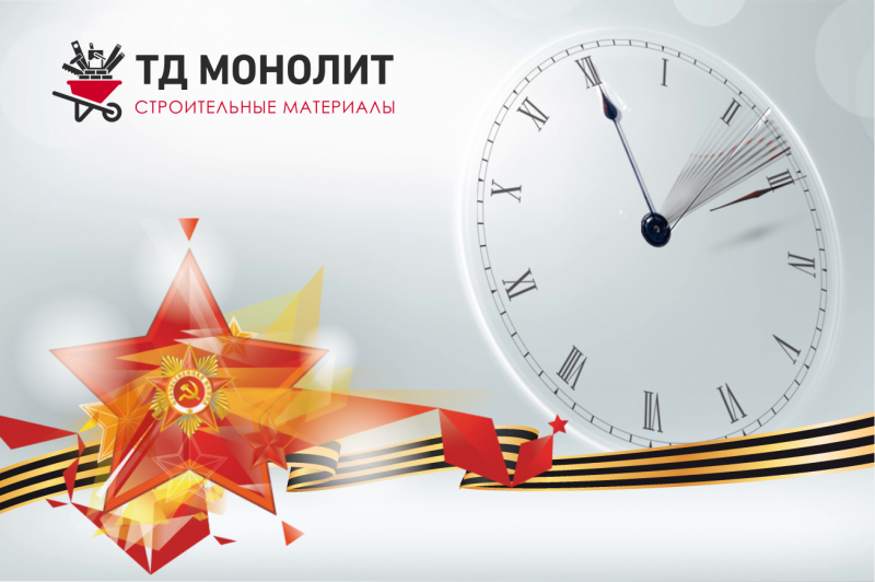 Весь персонал компании Монолит-сервис спешит поздравить вас с Днем победы! Это великий праздник, который говорит о героизме, мужестве и борьбе за мир без войны. Хотим пожелать вам от всего коллектива компании крепкого здоровья, любви к родине и мира. Пусть сбываются все ваши мечты и пожелания! Еще раз с праздником Великой победы!